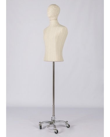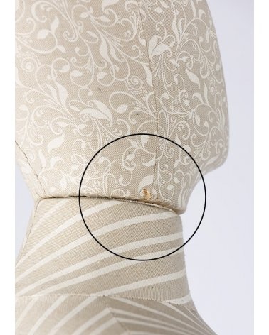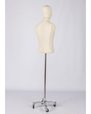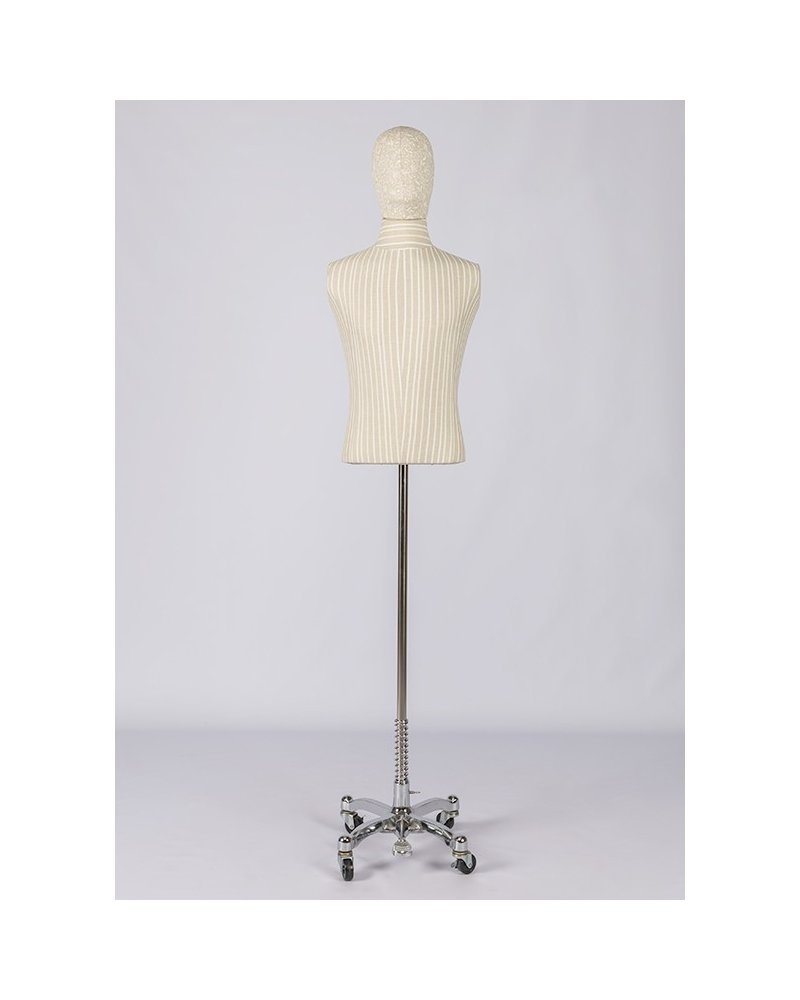 Busto de hombre con cabeza tapizado con una tela a rayas y un la cabeza estampada con un motivo floral. El busto puede contener algún desperfecto, recomendamos observacar con detenimiento todas las fotografías y lo consulte con nuestro servicio de atención al cliente antes de realizar la compra.