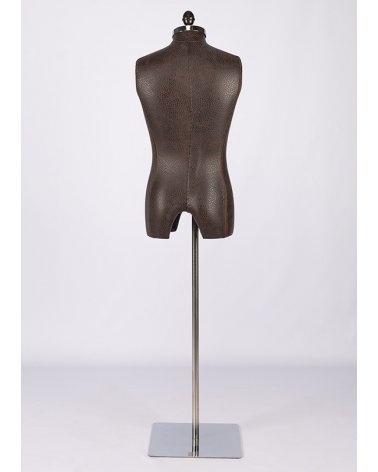 Busto de hombre sin cabeza tapizado en polipiel sin brazos y con top de bellota decorativo.