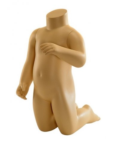 Maniquí de bebe sin cabeza. Posición arrodillado.