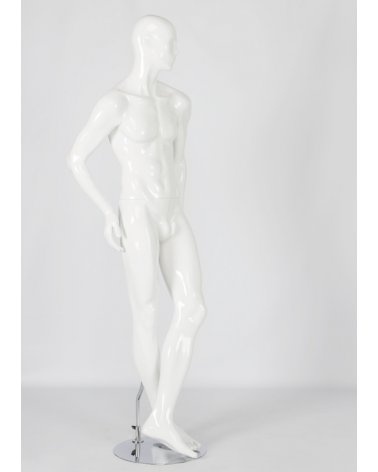 Maniquí de hombre de estilo abstracto posando con las piernas cruzadas. La colección de maniquíes Rock In Rio aglutina maniquíes de hombre y mujer con unas posturas dinámicas que ayudan a darle vida a tu escaparate.