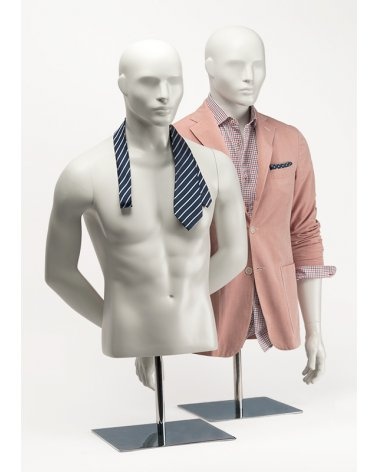 Torsos Fabricados en Poliéster + Fibra de vidrio, suministrado en color Blanco mate y con una base redonda de metal.