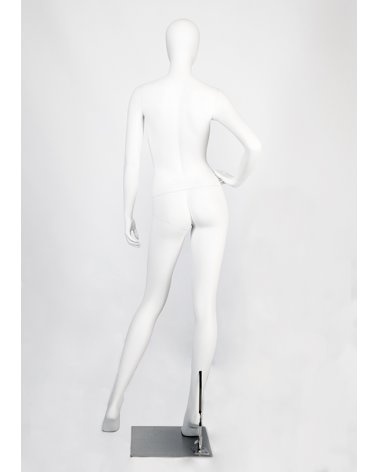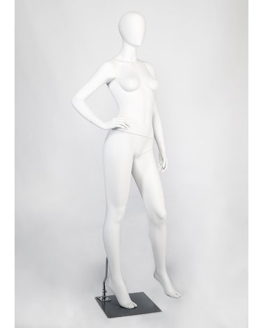 Maniqui de señora de estilo realista en posición relajada con la mano derecha en la cintura . El maniquí Galatea pintado en blanco mate es perfecto para tiendas de moda femenina.