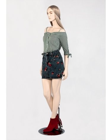 Maniqui de mujer en posición relajada de estilo realista. La colección de maniquíes Soft chic reúne diseños de maniquíes femeninos de espiritu joven y rasgos suaves.