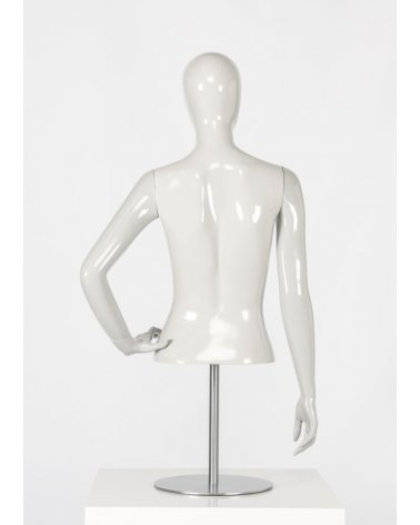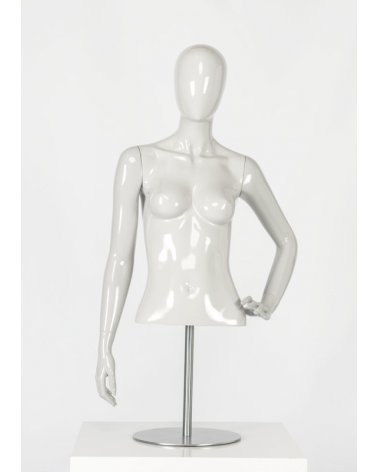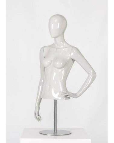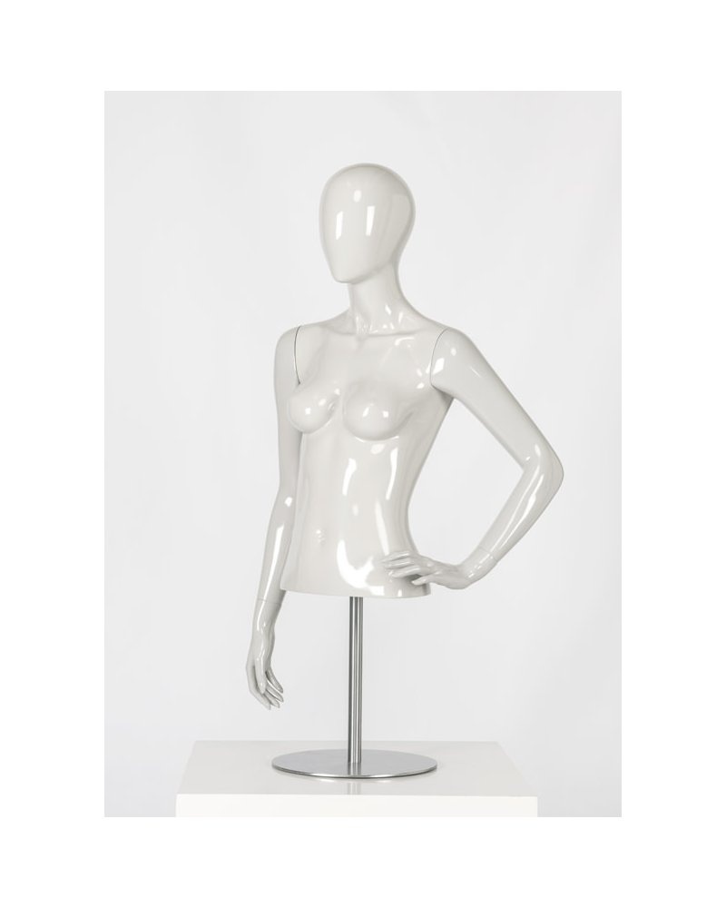 Torso de mujer de estilo cabeza huevo con la mano izquierda a la cintura. El maniquí Galatea es perfecto para tiendas de moda y lencería femenina.