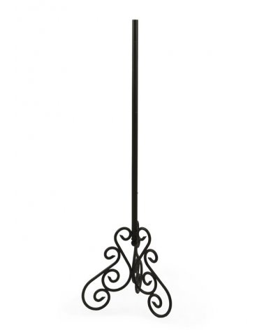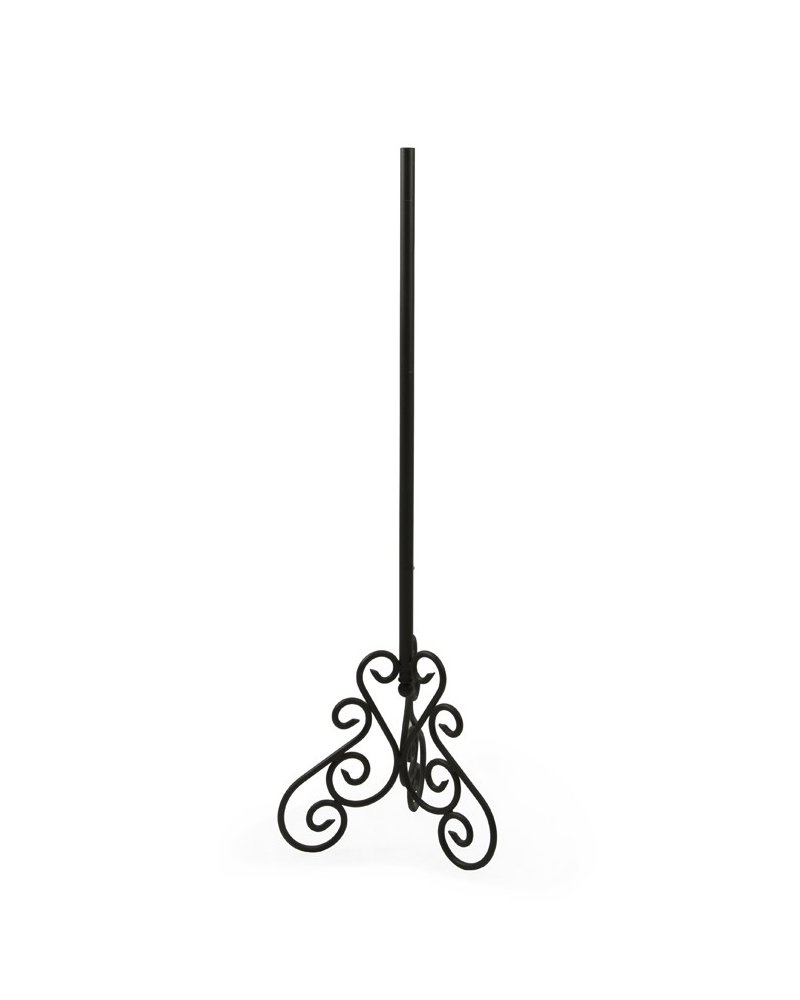 Base trípode de forja de diseño romántico para exponer ropa en bustos y torsos. Base de 340x340 mm. con tubo redondo de diámetro 25 mm. y altura total de 144 cms