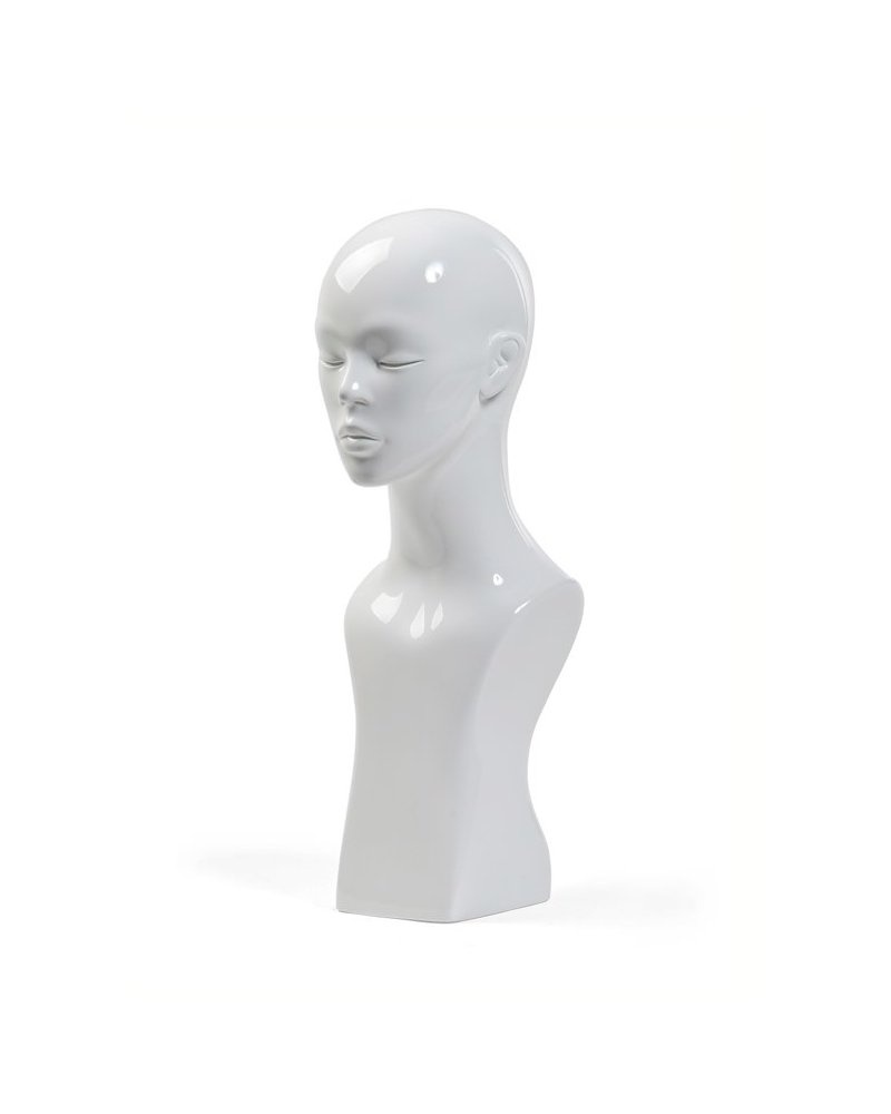 Female head display with features. Finished in gloss white.