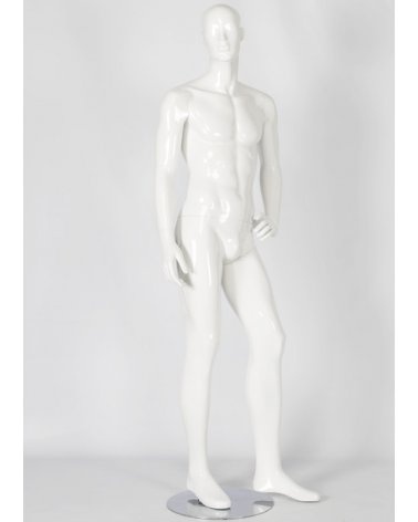 Male mannequin with his left hand on waist posing in abstract style. The couple of Vogue mannequins are perfect for fashion shops due to its elegant and timeless design.