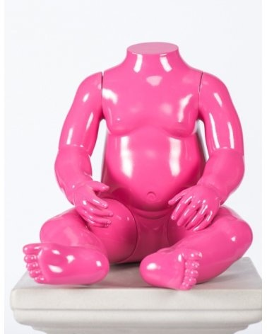Baby mannequin sitting without head. The arms can be lifted and moved, but can not be removed.