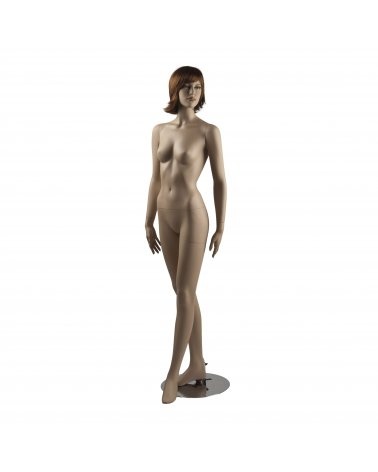 Realistic style woman mannequin, with makeup and wig. Standing position posing on relaxed attitude. Available finish: skin color.