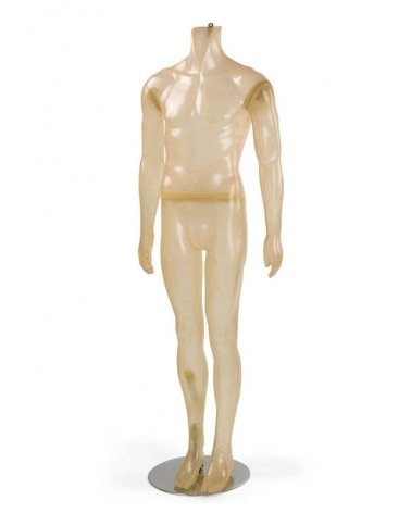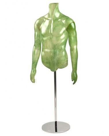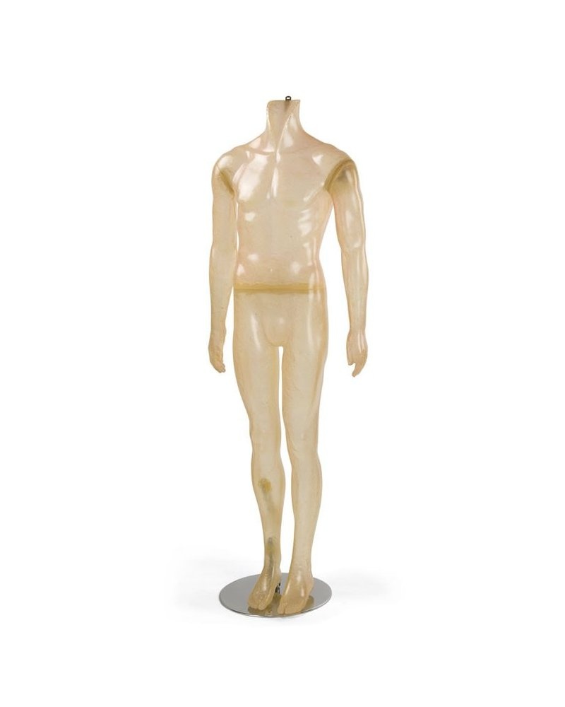 Men's mannequin in pink translucent finished, give a fun look to your window display of your men's clothing store with this original mannequin. Made of polyester and fiberglass. Metal base included with fixings on the leg and foot that facilitates the placement of footwear.